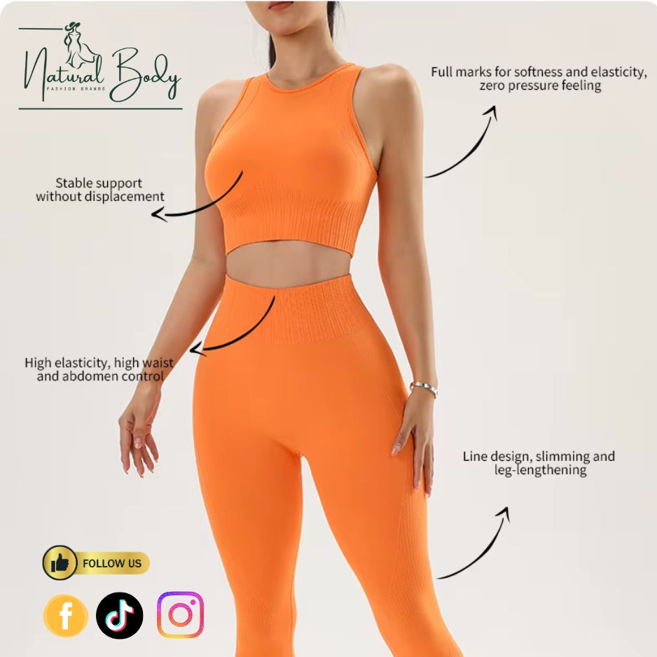 Seamless Yoga Set Two Piece Set Womens Outifits Workout Gym Set Fitness Clothing Tracksuit Backless Crop Top Leggings Sport Suit 2026