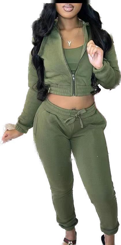 Amazon Independent Station European And American Women's Fold Solid Color Zipper Sports Two-Piece Suit