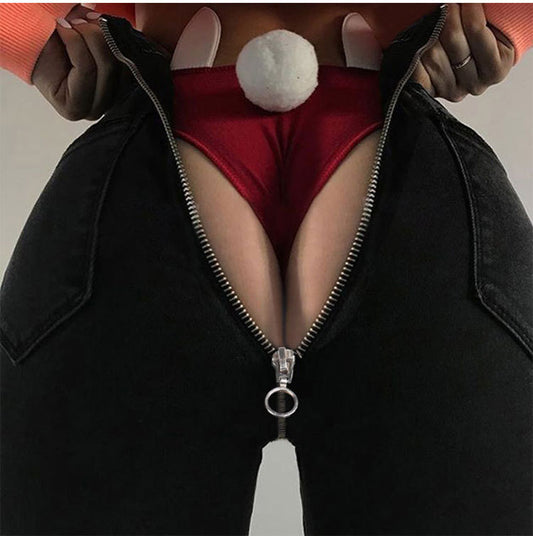 Women's Back Zipper Bottomed Jeans Are Slim