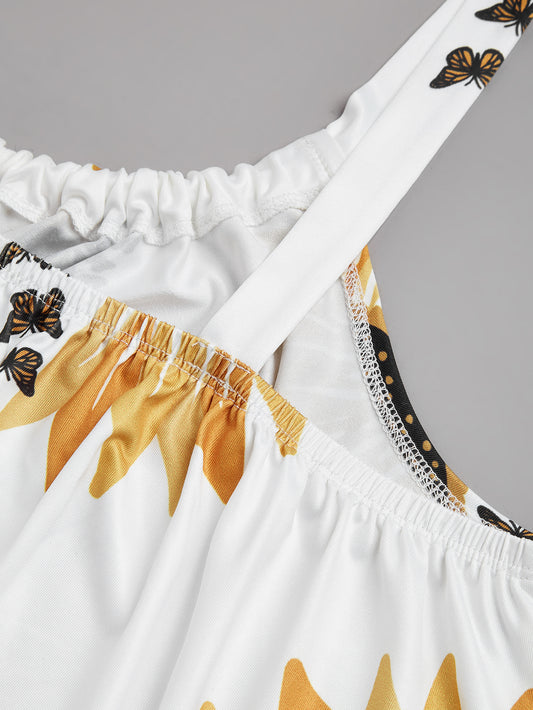 Plus Size Sleeveless Camisole Sunflower Printed Vest Elegant Wrap Women's Sexy Party Casual Loose Dresses