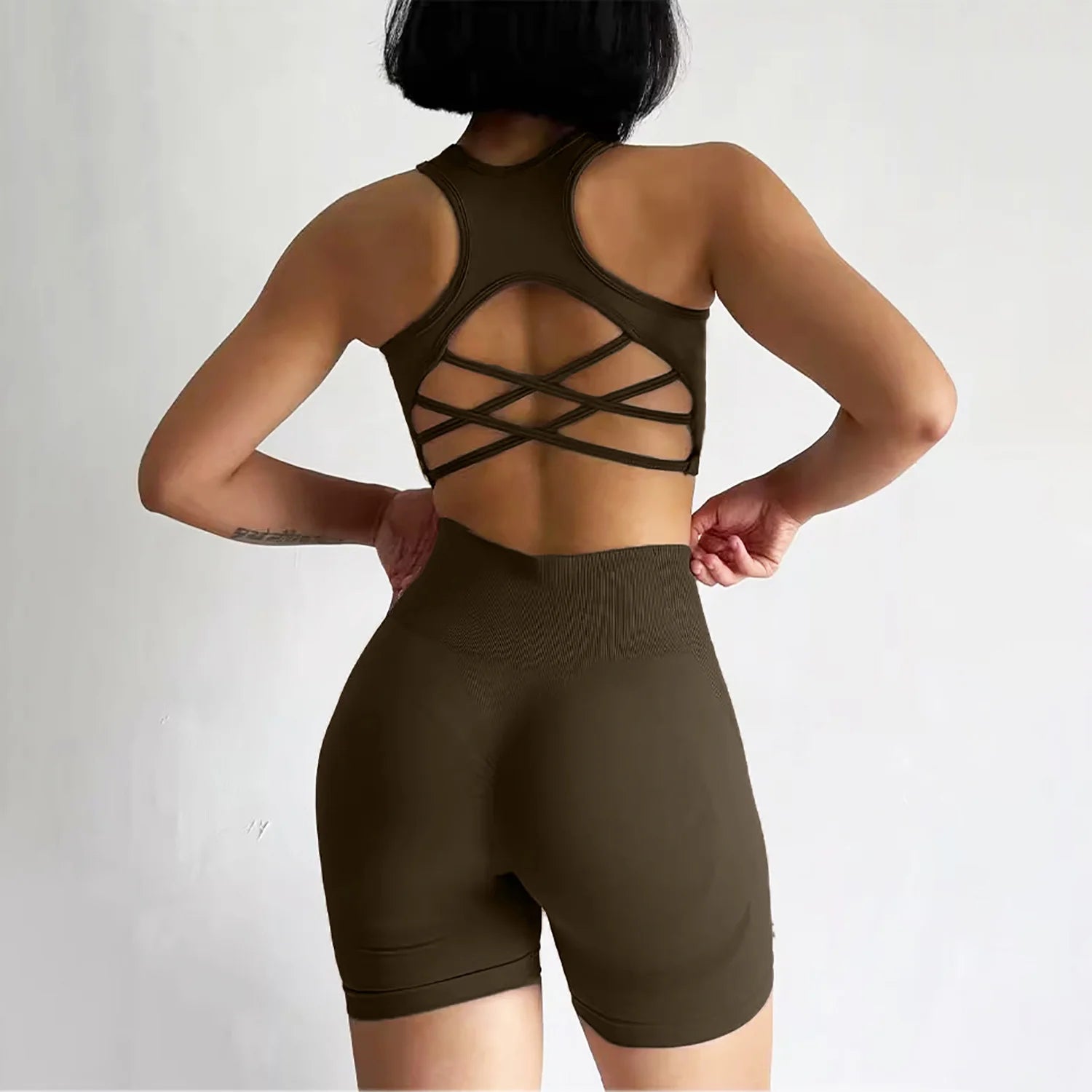 2 PCS Women's Seamless Yoga Set Sexy Sport Bra High Waist Sports Shorts Gym Fitness Sleeveless Workout Suit Sporstwear
