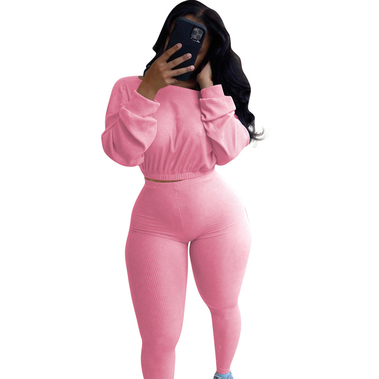 Ladies Fashion Autumn Ribbed Athleisure Suit