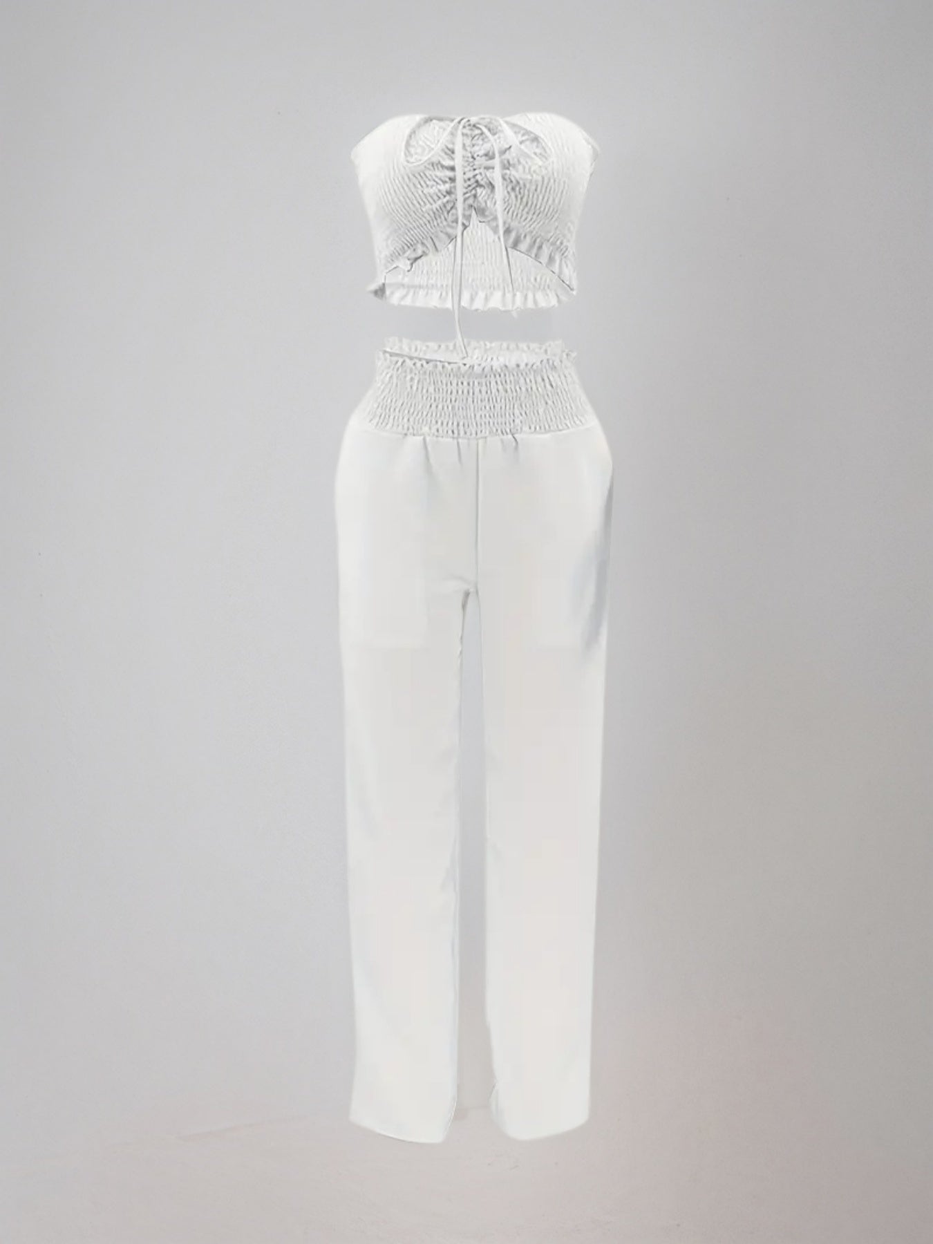 New Autumn Style Women's Two-piece Set, Featuring A Stylish Bow Design And Strapless Cover, Paired With A Stylish Pink Polyester Twopiece Set