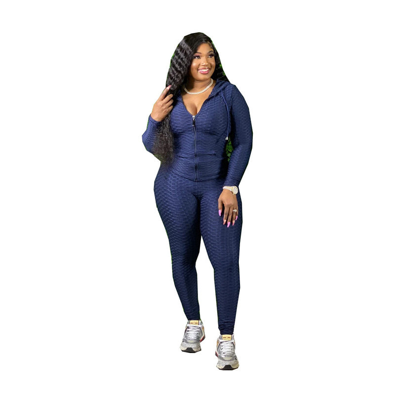 Solid Color Fat Women Plus Size Two Piece Set Sport Suitt