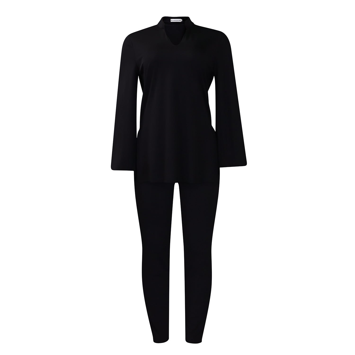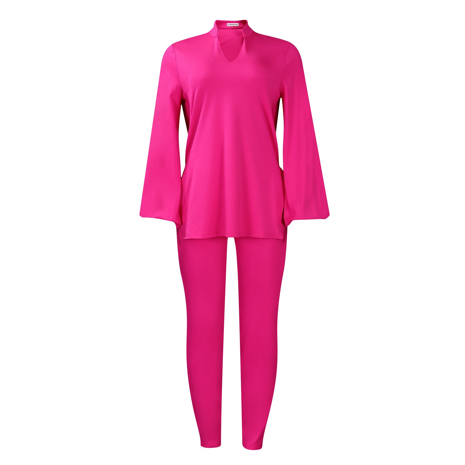 Solid Color Plus Size V-neck Long Sleeve Top Pants Suit
