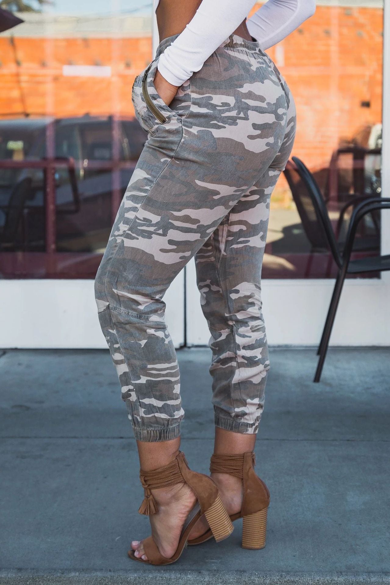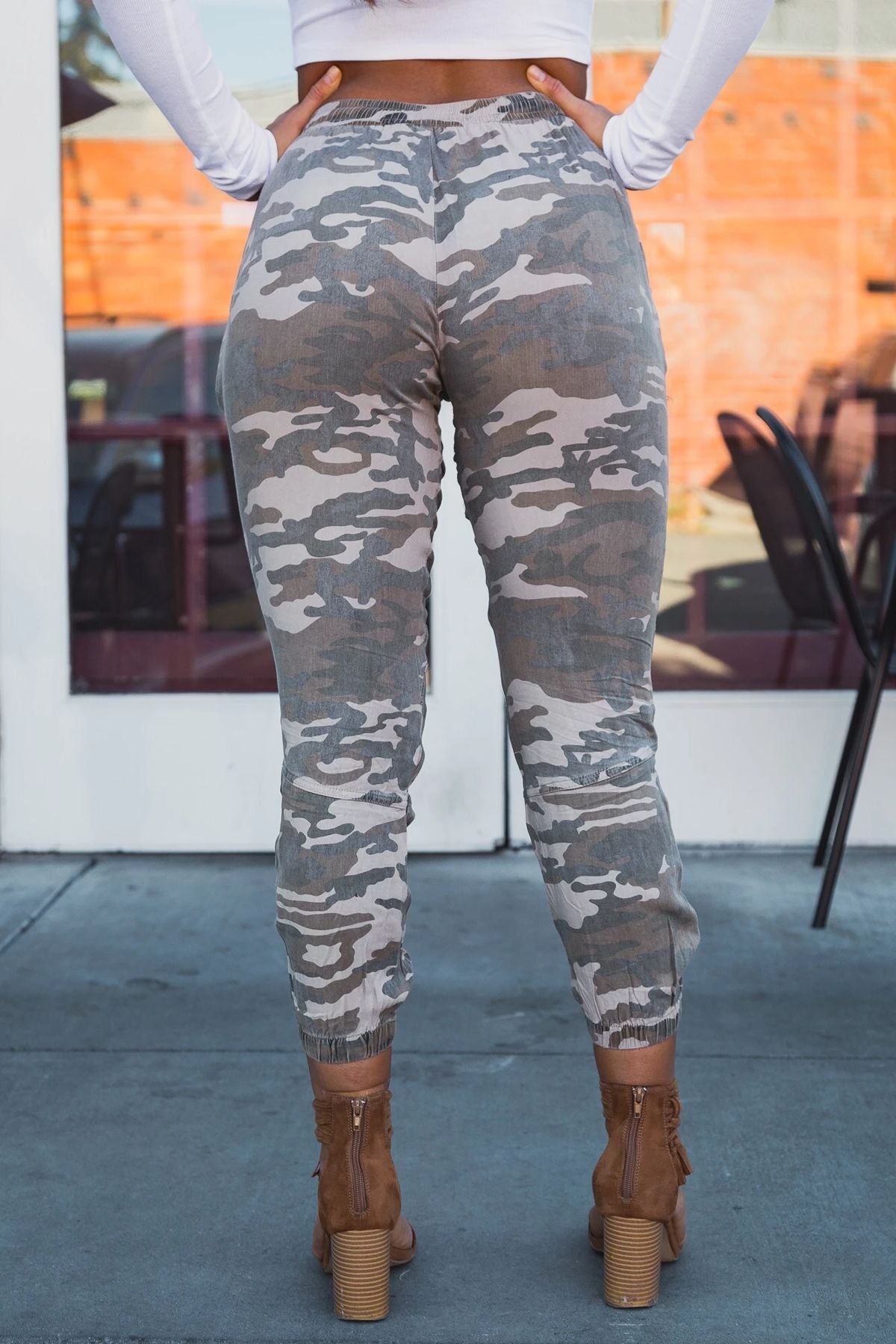 Stretch Camouflage Lace Up Elastic Women's Work Denim Cropped Pants