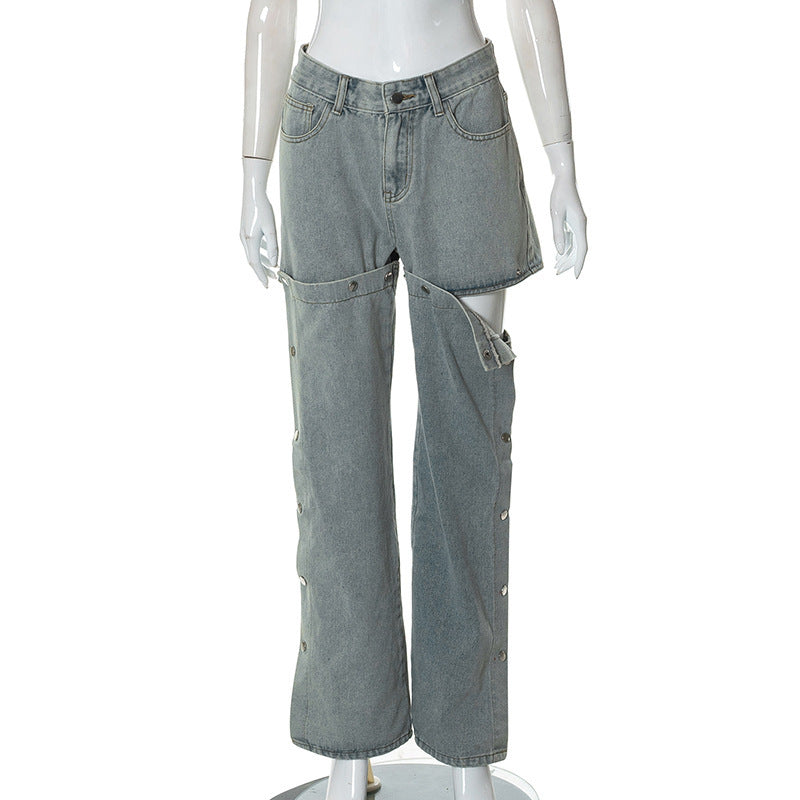 Women's Solid Casual Button Loose Jeans